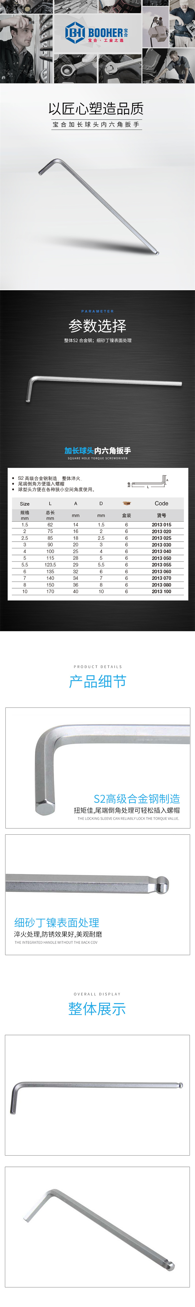宝合(BOOHER) 2013030 加长球头内六角扳手 3MM(单位:支)