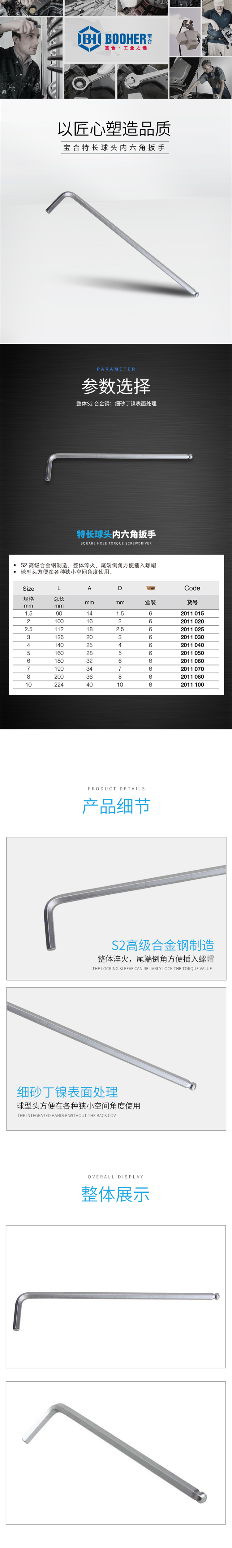 宝合(BOOHER) 2011050 特长球头内六角扳手 5MM(单位:支)