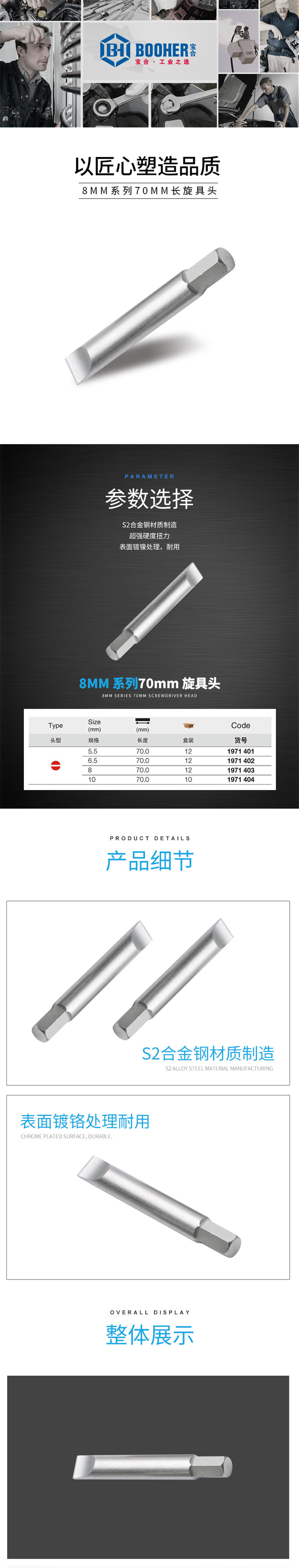 宝合(BOOHER) 1971404 8MM系列70MM一字旋具头 10MM(单位:支)