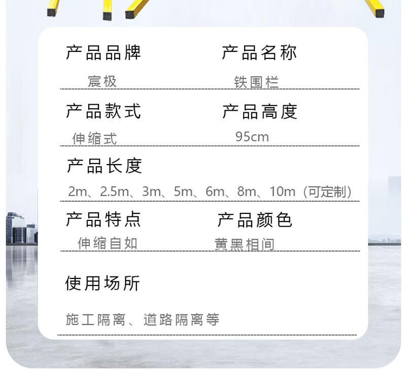 宸极 CH-TWLR1028 铁管伸缩围栏 1.02*8m (单位:片) 红黄相间