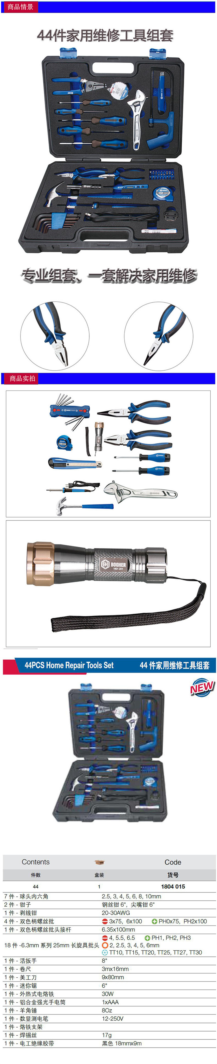 宝合(BOOHER) 1804015 家用维修工具组套 44件套(单位:套)