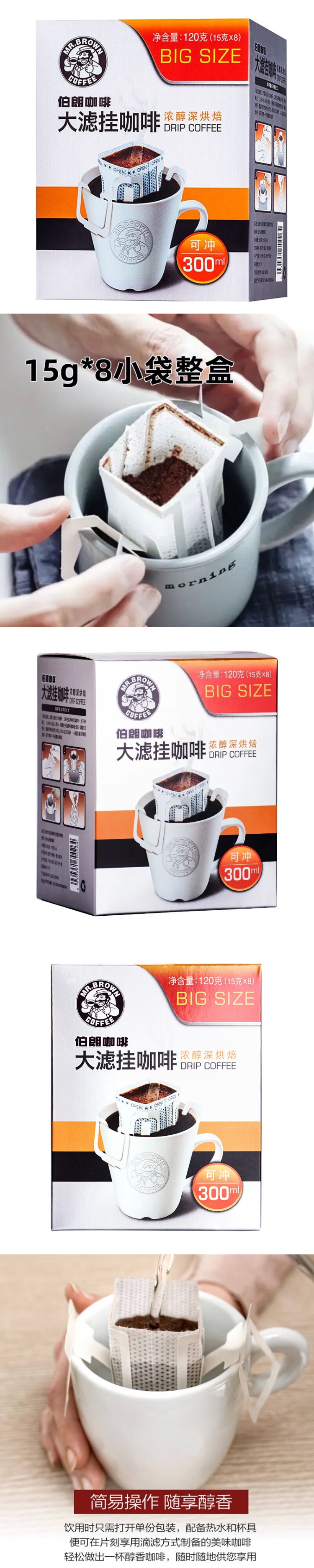 伯朗 浓醇深烘焙 大滤挂咖啡 15g/袋 8袋/盒(单位:盒)