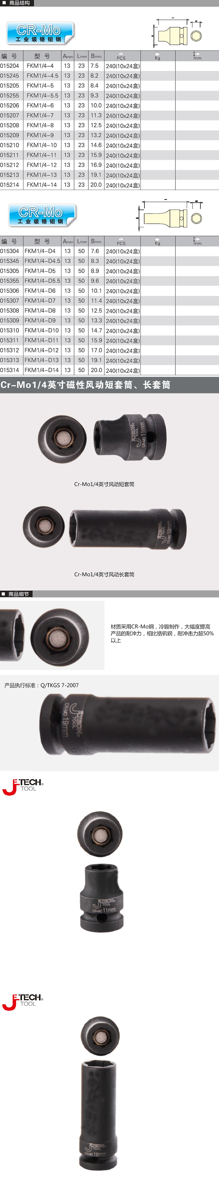 捷科(JETECH) FKM1/4-8 1/4"系列磁性风动套筒(单位:个)