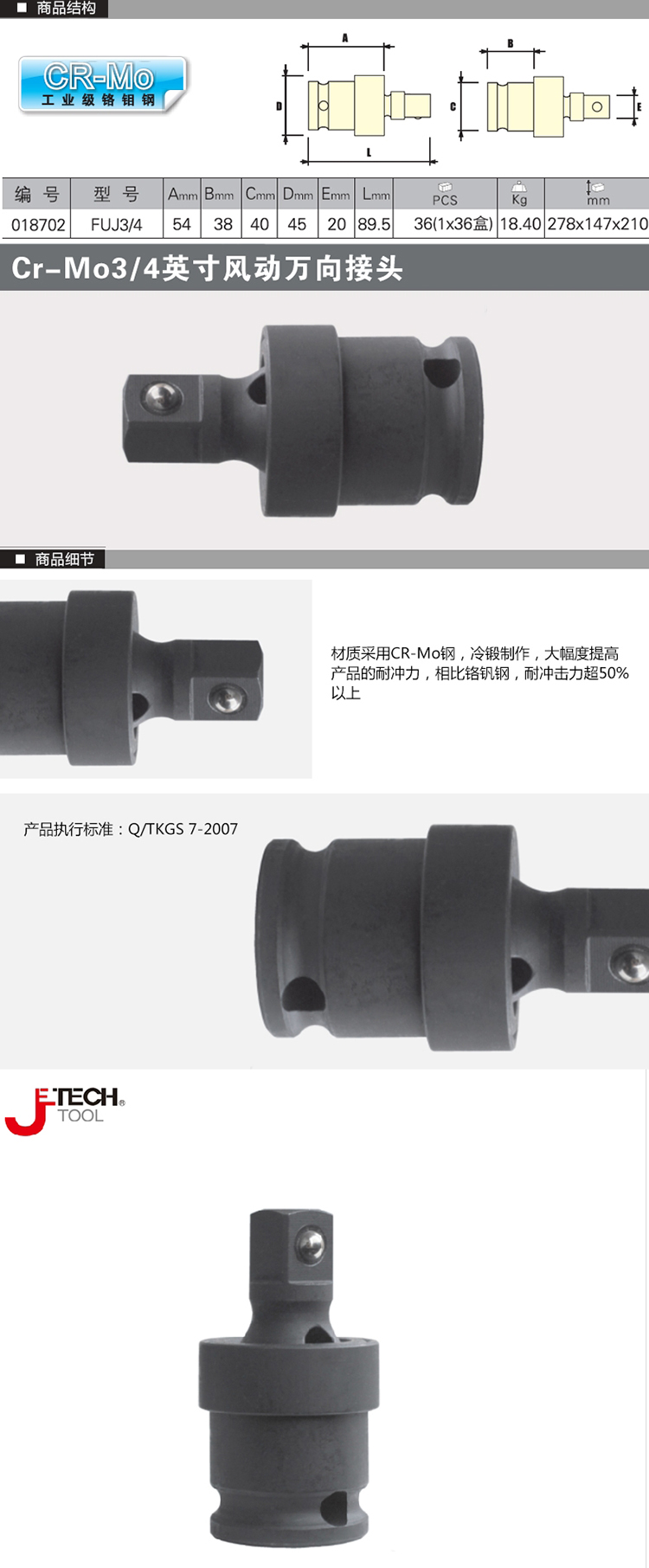 捷科(JETECH) FEB3/4-4 3/4-4"长风动接杆(单位:个)