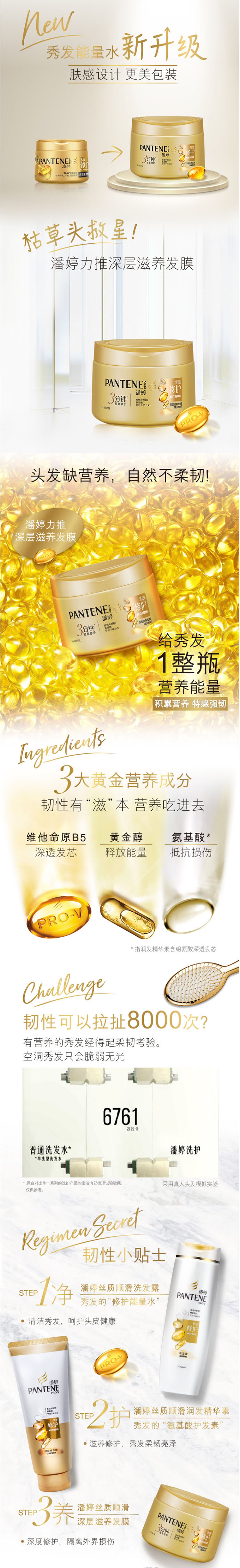 潘婷 V醇精华 乳液修护发膜 270g(单位:瓶) 新老包装随机发货