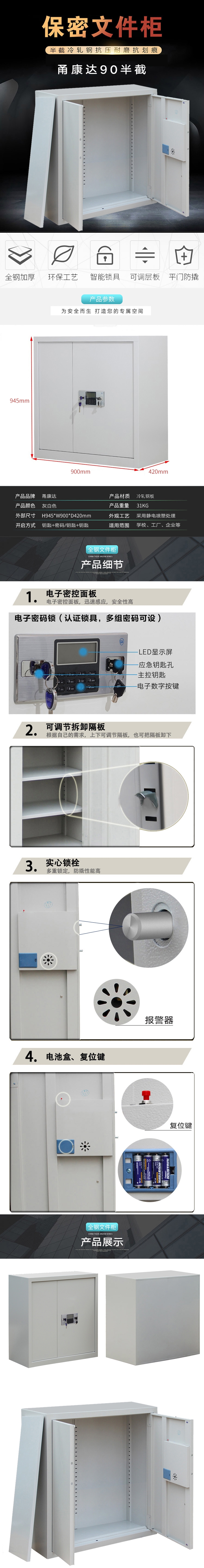 甬康达 90D半截 电子密码锁保密柜(单位:台) 灰白色