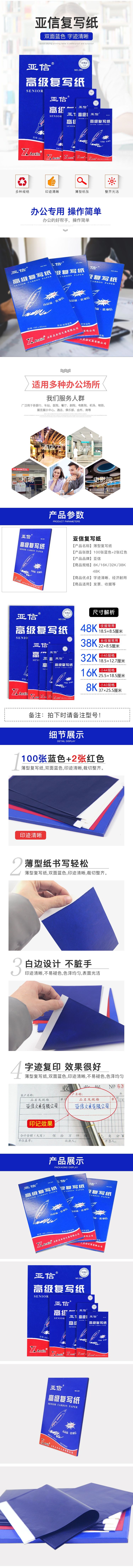 亚信(Arxin) NO.281 复写纸 16K 100张/本(单位:盒) 蓝色