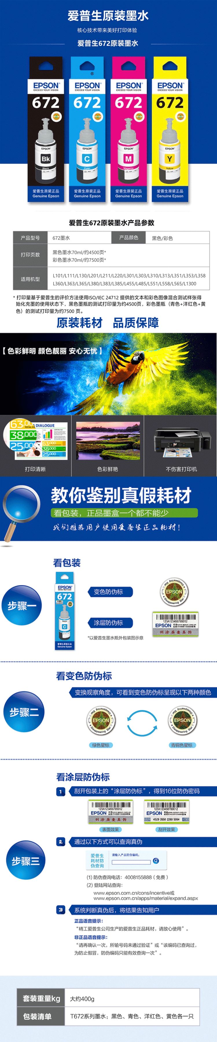 爱普生(EPSON) T6721-T6724 墨盒套装(单位:个)
