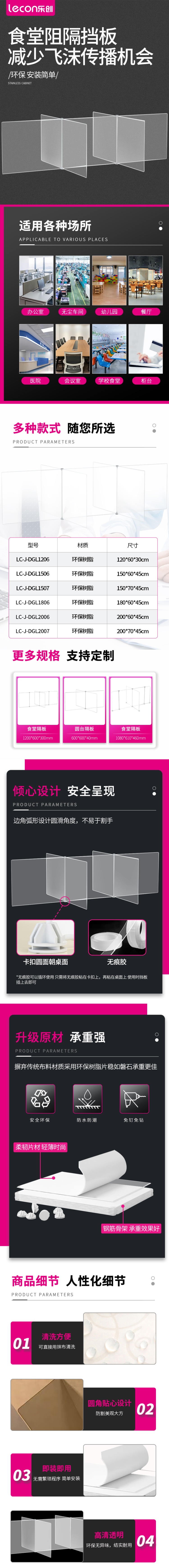 乐创(lecon) LC-J-DGL2007 商用餐桌隔离板 六人座短隔板 2000*700*450mm(单位:个)
