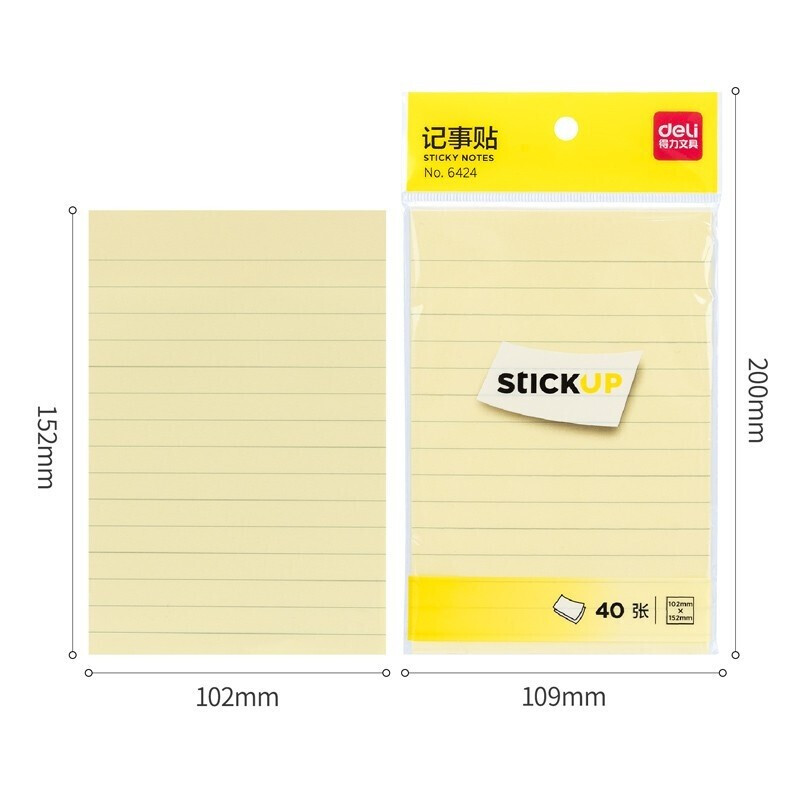 得力(deli) 6424 横线记事贴 长102mm*宽152mm(单位:组) 10本/组 黄色