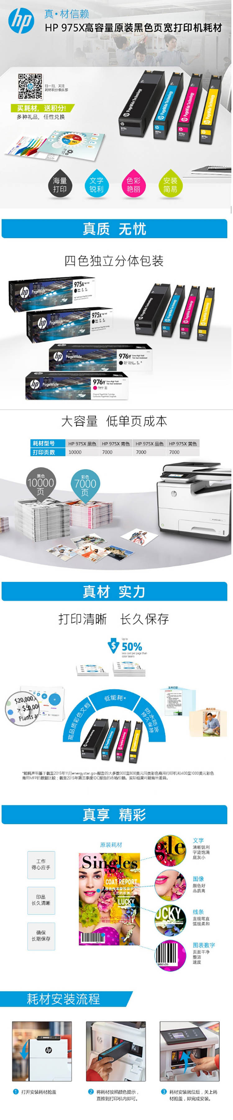 惠普(HP) 975X高容量墨盒 L0S00AA 青色 适用577dw 477dw/dn 552dw 452dw/dn P55250dw P57750dw