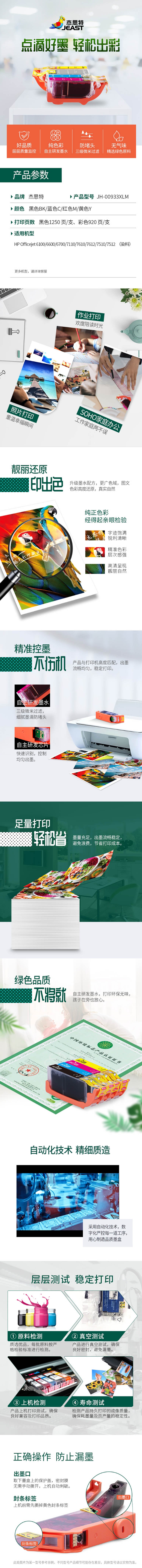 杰思特(JEAST) 墨盒 JH-00933XLM 红色 适用惠普HP 6100 6700 7110 7512