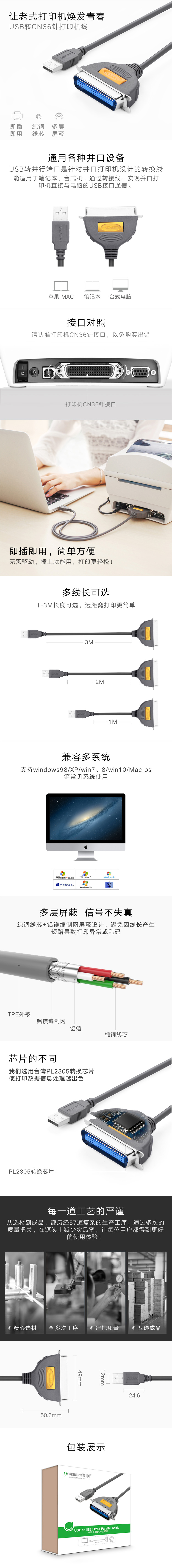 商品名称 usb转DB36并口打印线