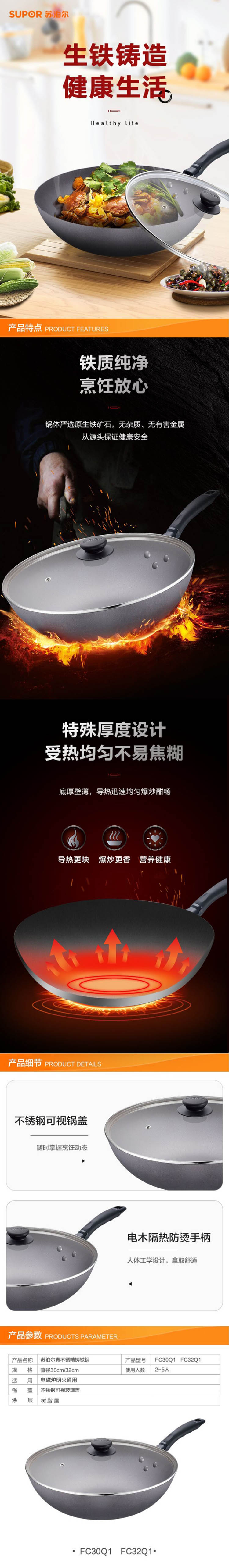 苏泊尔(SUPOR) FC30Q1 炒锅精铸铁锅炒菜锅 30cm(单位:个) 电磁炉 明火通用