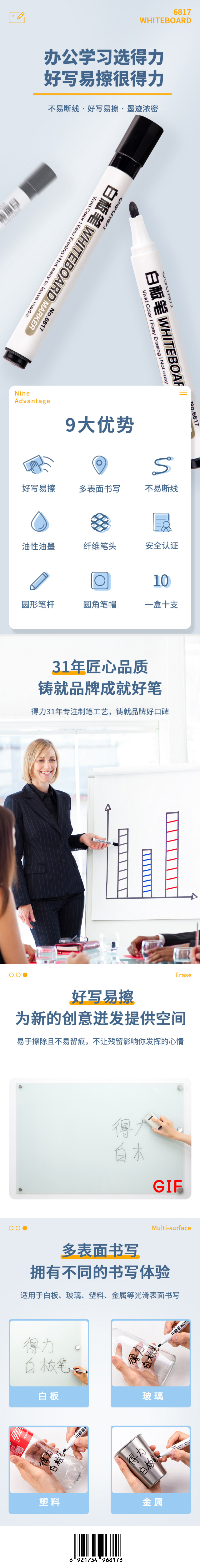 得力(deli) 6817 白板笔 2.0mm 10支/盒 (单位:盒) 黑色