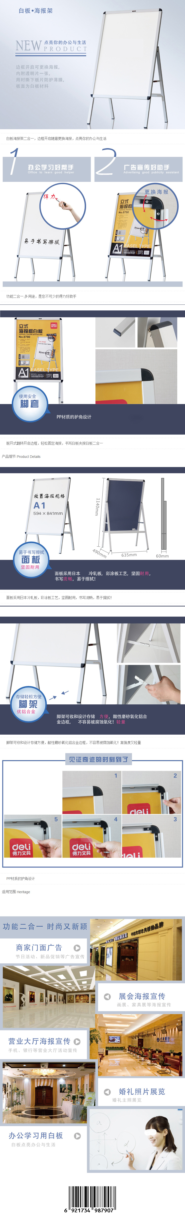 得力(deli) 8790 立式海报框白板 841*594mm(单位:个) 银色