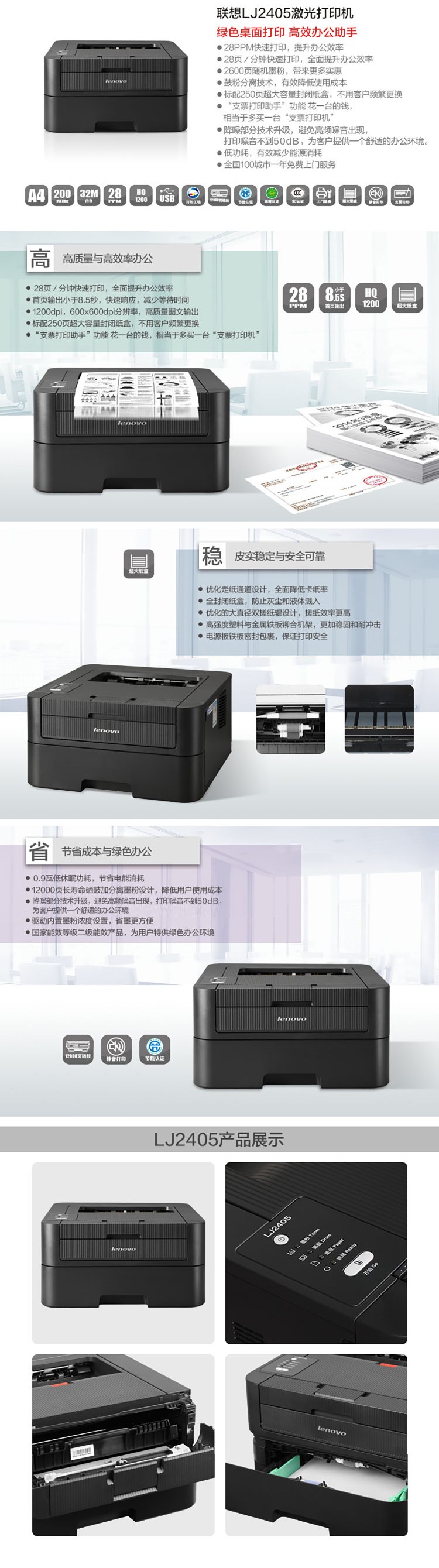 联想(Lenovo) LJ2405D 黑白激光打印机 A4 (单位:台) 28页/分钟