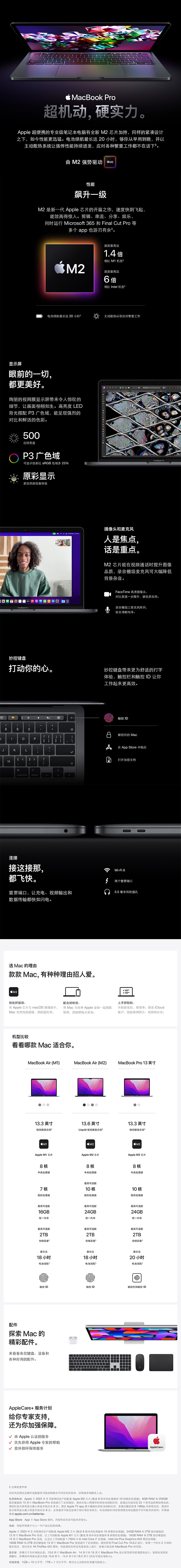 Apple(苹果) MacBook pro 笔记本电脑 M2(8+10核)/16G/512G/集成显卡/13.3英寸 银色