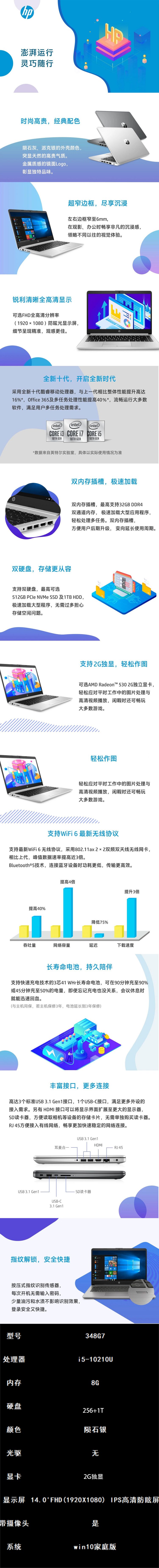 惠普(HP) 笔记本电脑 348 G7 i5-10210U/8G/1T+256G/AMD R530 GDDR5 2G显存/无光驱/Win10HB 64位/14英寸/1年保修服务