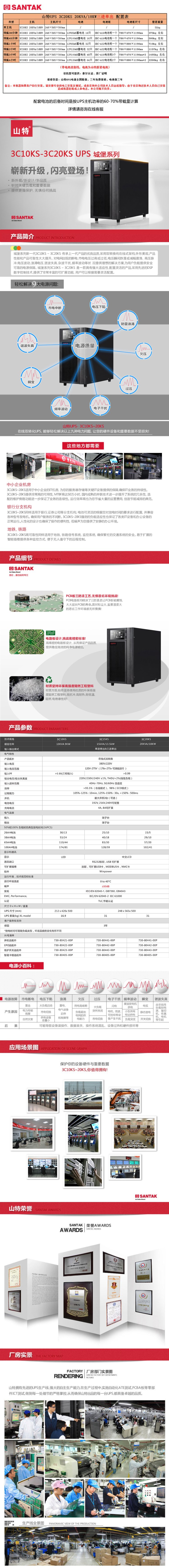 山特(SANTAK) 三进单出在线式UPS不间断电源 3C20KS 20KVA/18KW 停电续航3小时