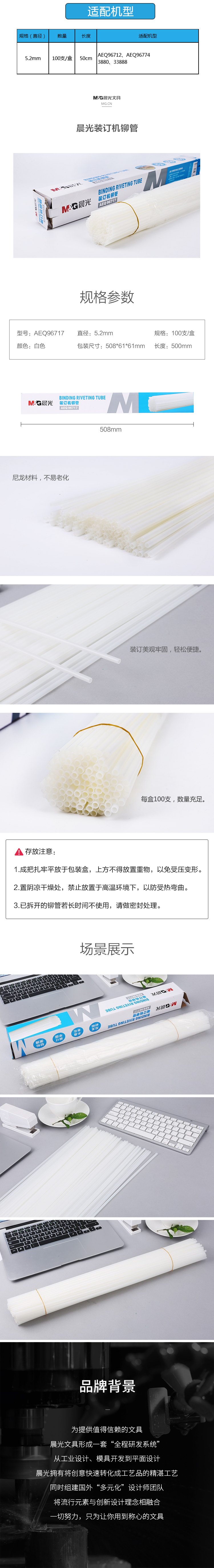 晨光(M&G) 自动财务凭证装订机铆管 5.2*500mm AEQ96717