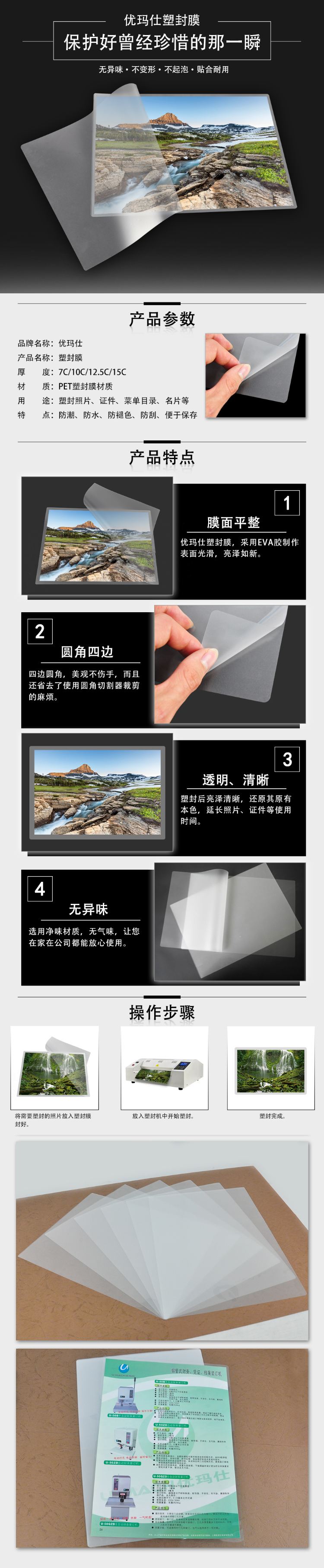 优玛仕 (U-mach) 塑封膜 220*310mm 7mic 100张/包
