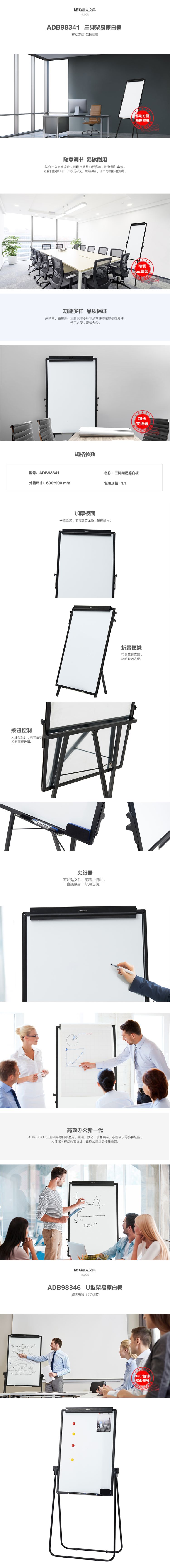 晨光(M&G) ADB98346 U型架易擦白板 黑色