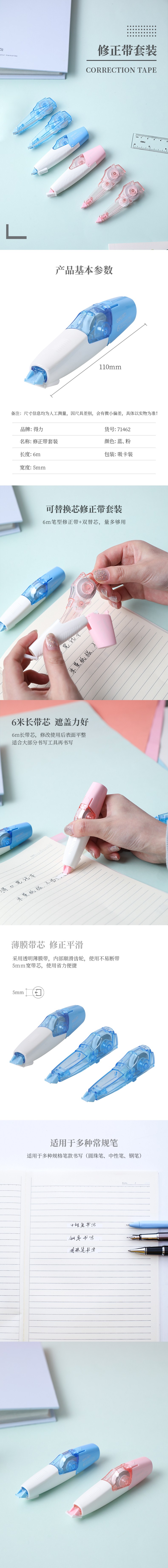 得力(deli) 71462 笔型修正带套装 浅蓝色