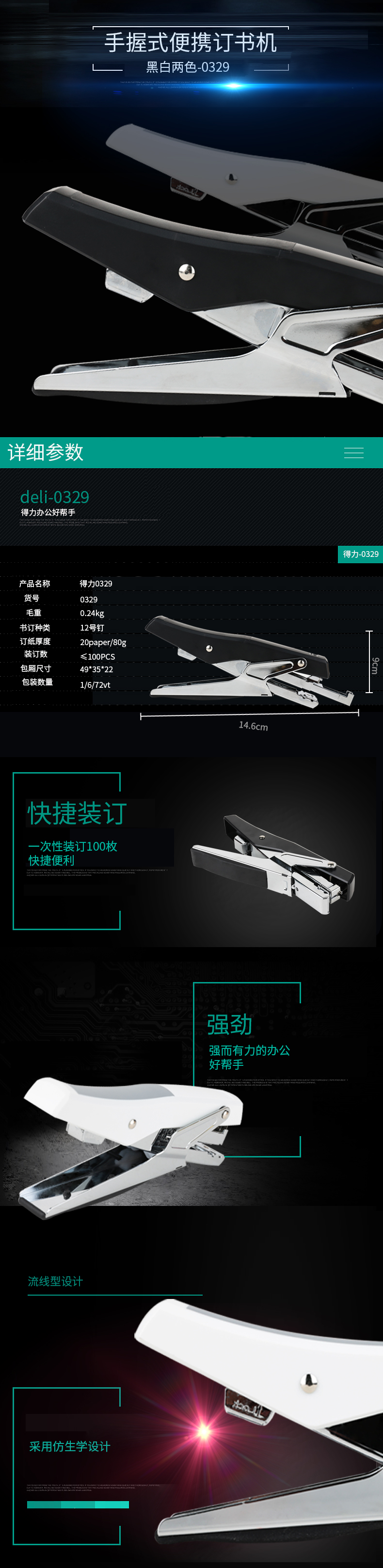 得力(deli) 0329 订书机 白色
