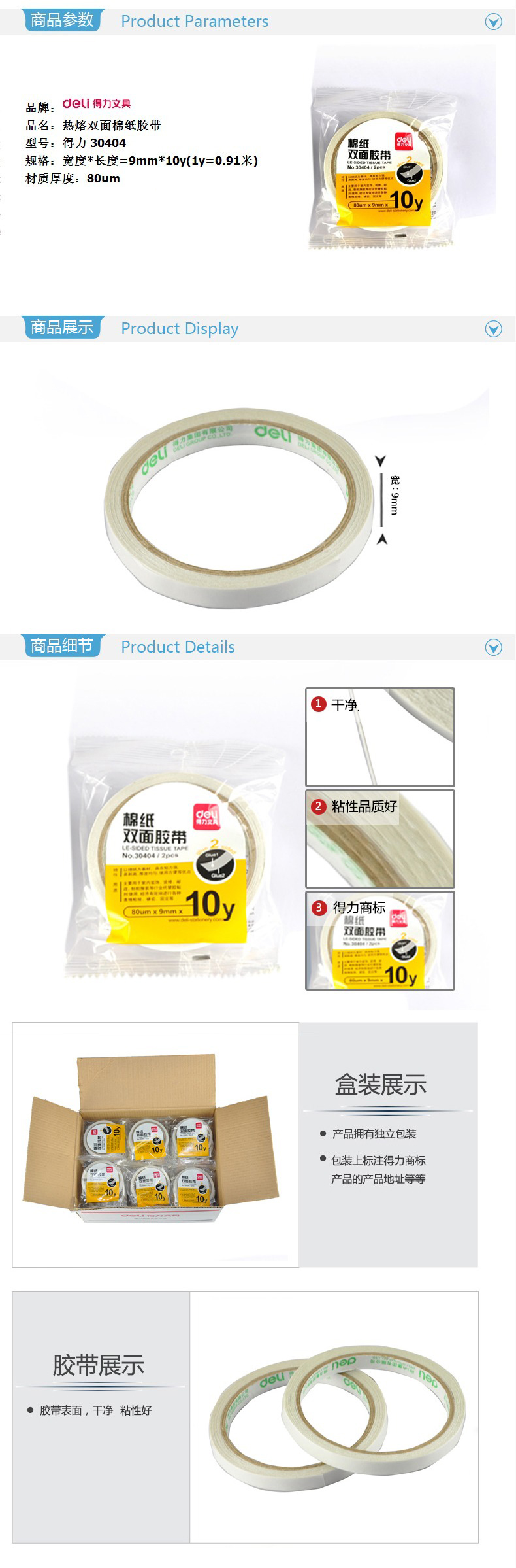 得力/deli 30404 棉纸双面胶带(单位:卷)