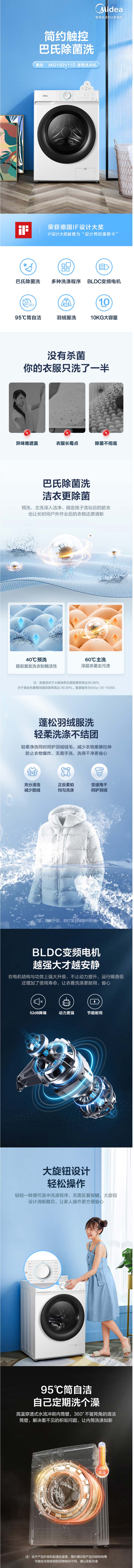 美的(Midea) 10公斤 全自动滚筒洗衣机 MG100V11D