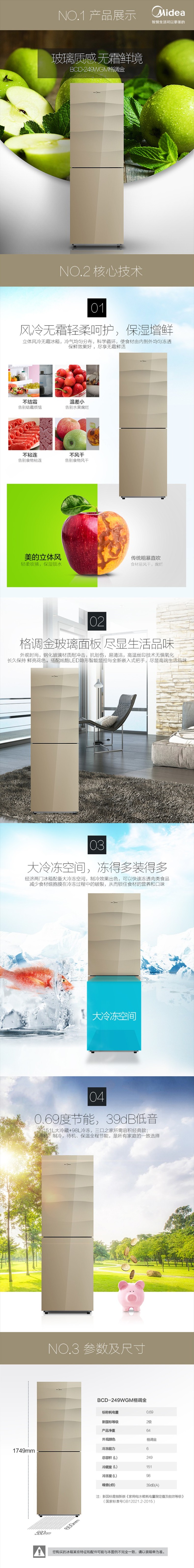 产品名称 美的(Midea) 249升风冷无霜双门电冰箱 BCD-249WGM 格调金