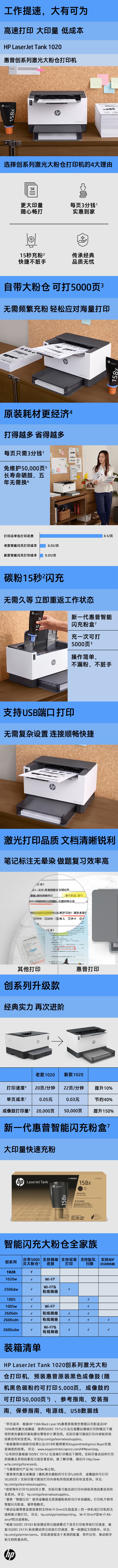 惠普(HP) 黑白激光打印机 LaserJet Tank 1020