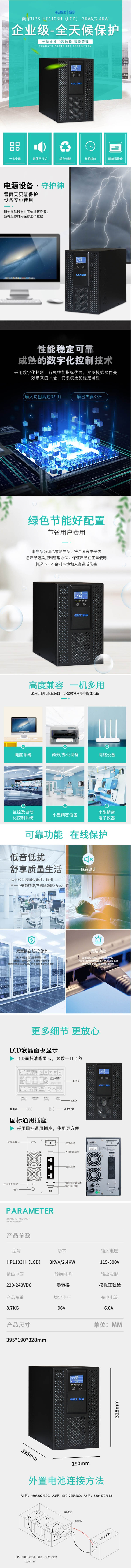 商宇 HP1103H UPS不间断电源(单位:套) 在线式3KVA/2400W外接电池 续航2小时 HP1103H*1、GW1265*8、A8*1