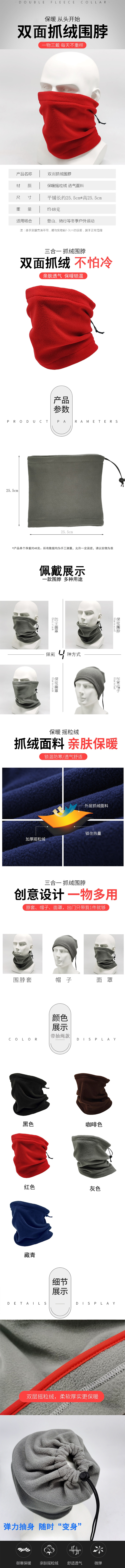 Tri-polar TP6386 户外围巾脖套加厚保暖头套 25.5*25.5cm 藏青色