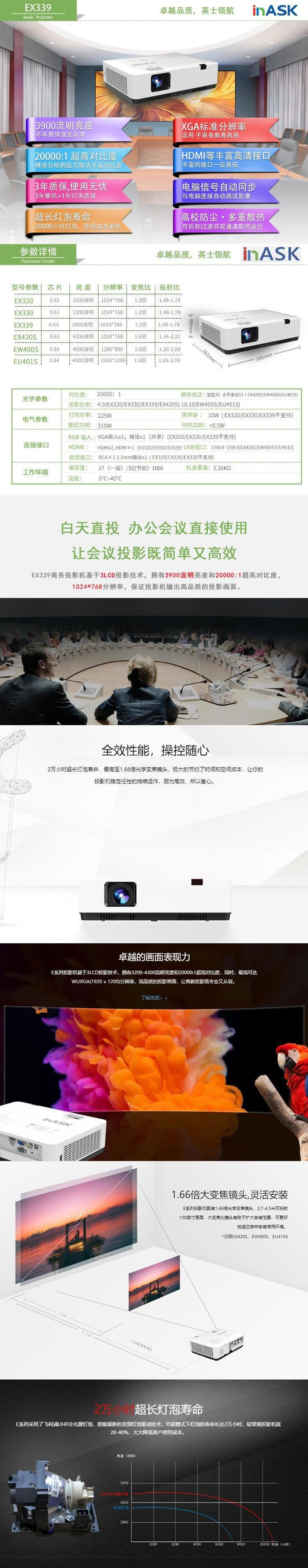 英士 高亮型投影仪 1920×1200 4100流明 EU401S
