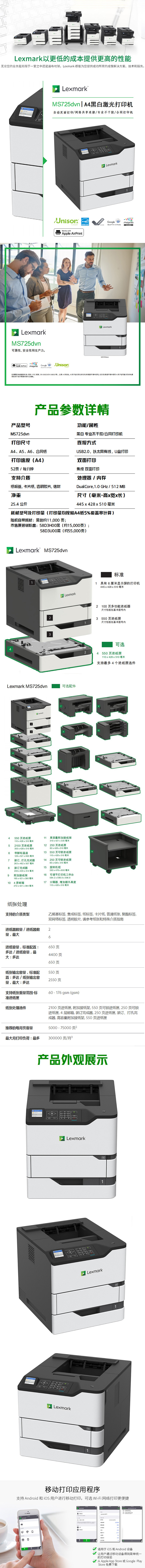 利盟(Lexmark) MS725dvn 黑白A4激光打印机 一年上门服务(单位:台)