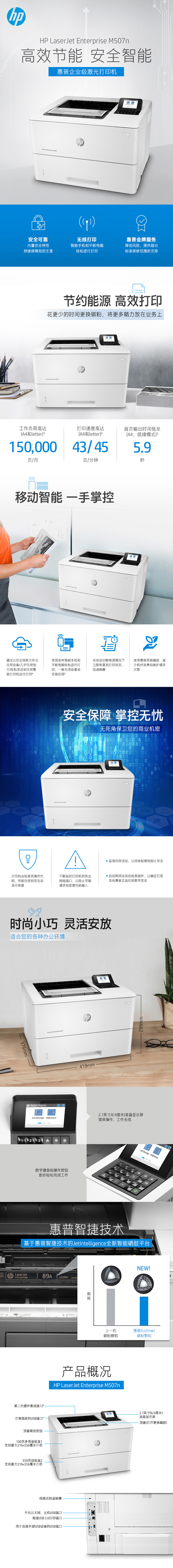 惠普(HP) M507n 黑白激光高速打印机 有线网络打印商用办公43页/分钟