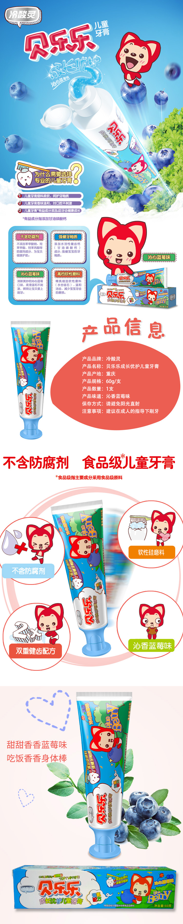冷酸灵 贝乐乐成长优护儿童牙膏 沁心蓝莓味 60g