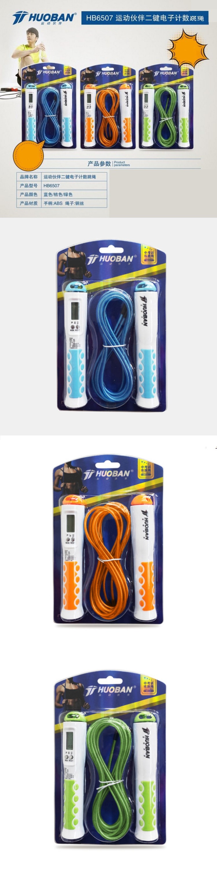 运动伙伴 二键电子计数跳绳 HB6507 蓝色 桔色 绿色 颜色随机