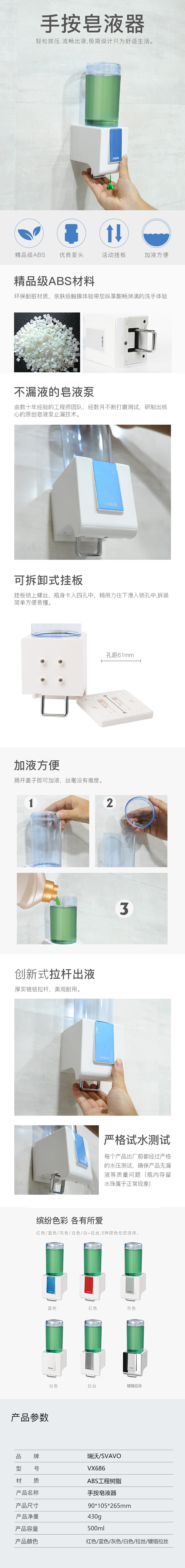 瑞沃 手动皂液器 VX686 白+红 500ml
