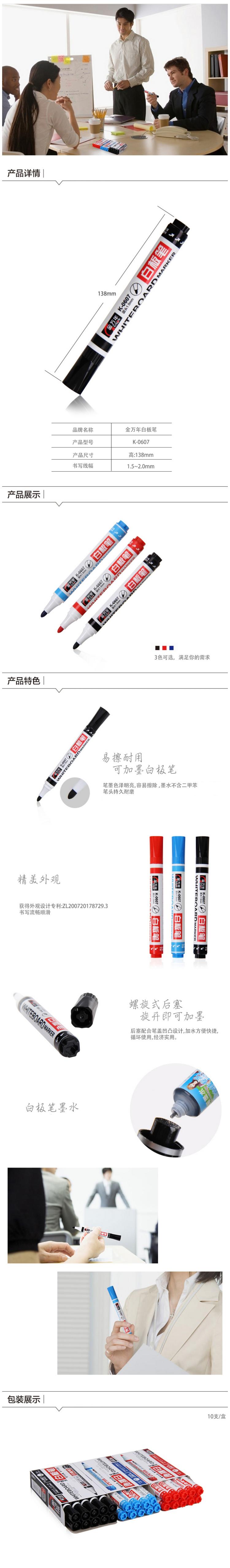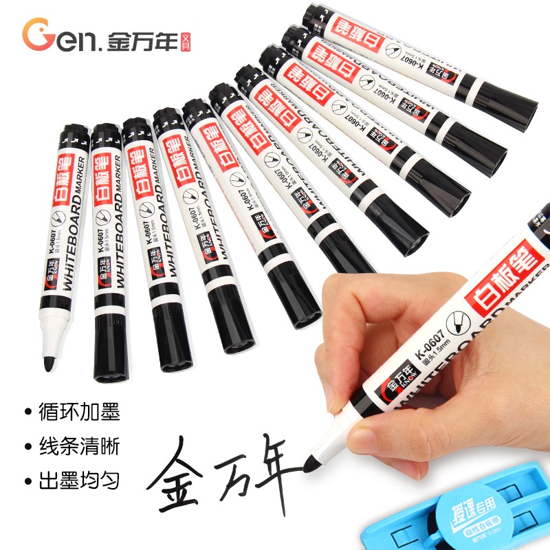金万年 可加墨白板笔 K-0607 10支/盒 黑色