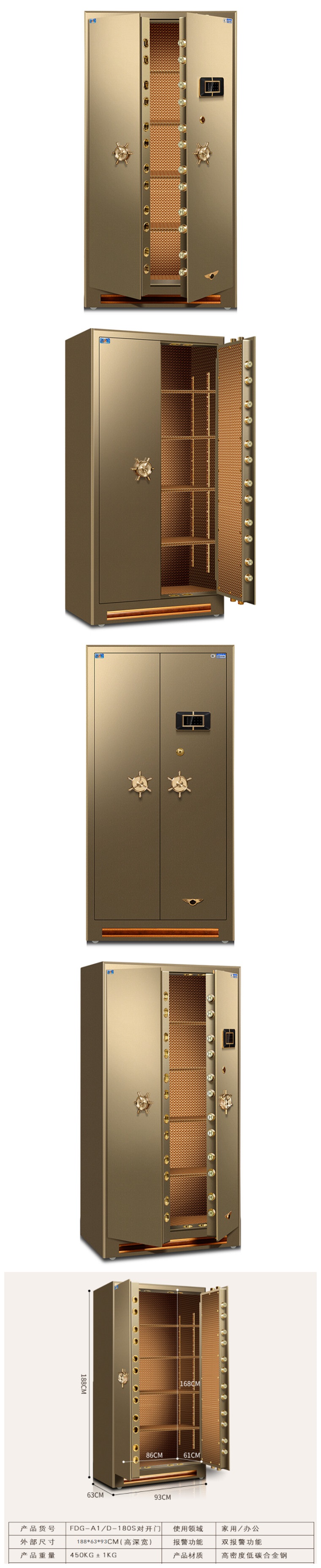 虎牌 FDG-A1/D-180S 保险柜 盛凌180 对门 指纹密码双功能 咖啡金色