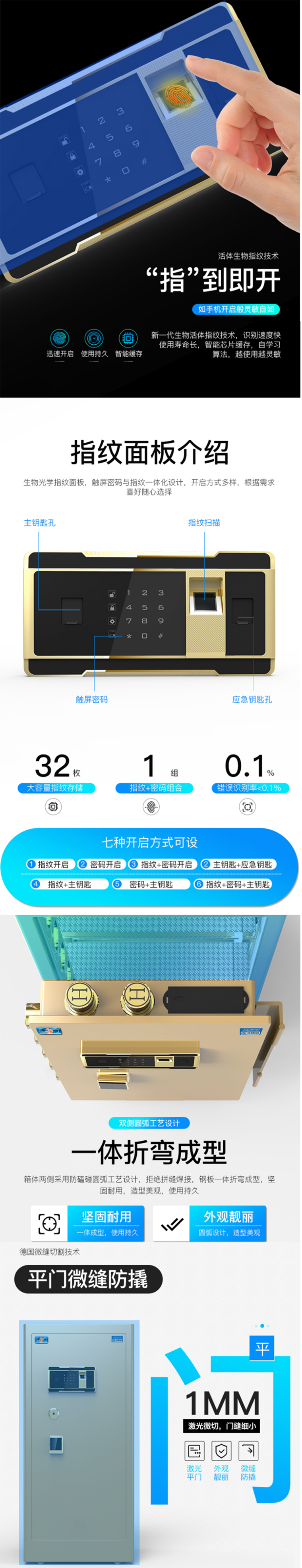 虎牌 1000*500*450mm 全钢防盗保险柜 指纹密码单门
