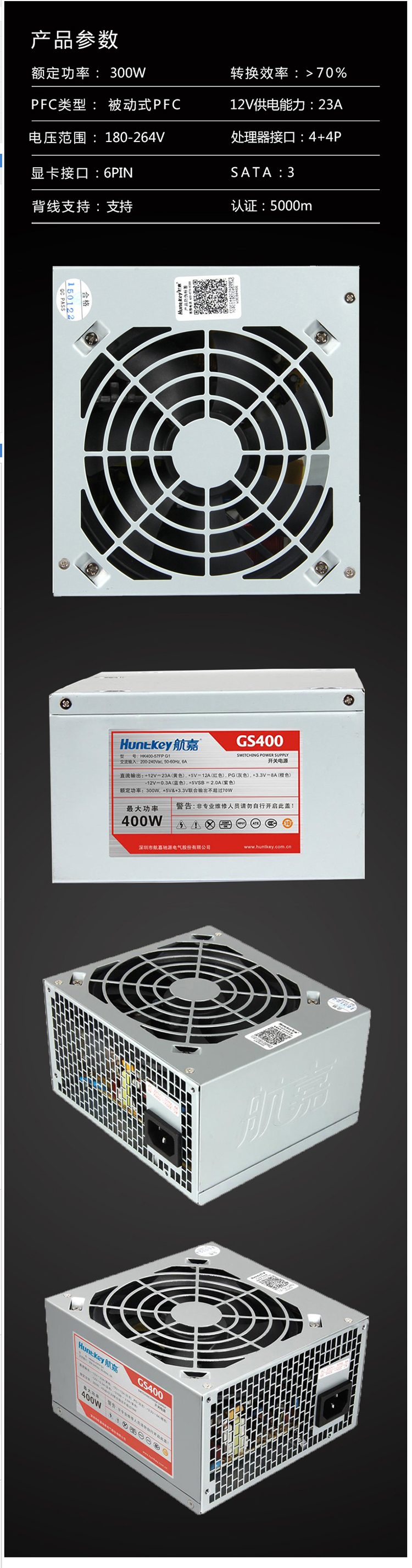 航嘉 GS400 台式电脑主机电源 额定300W 150*86*140mm