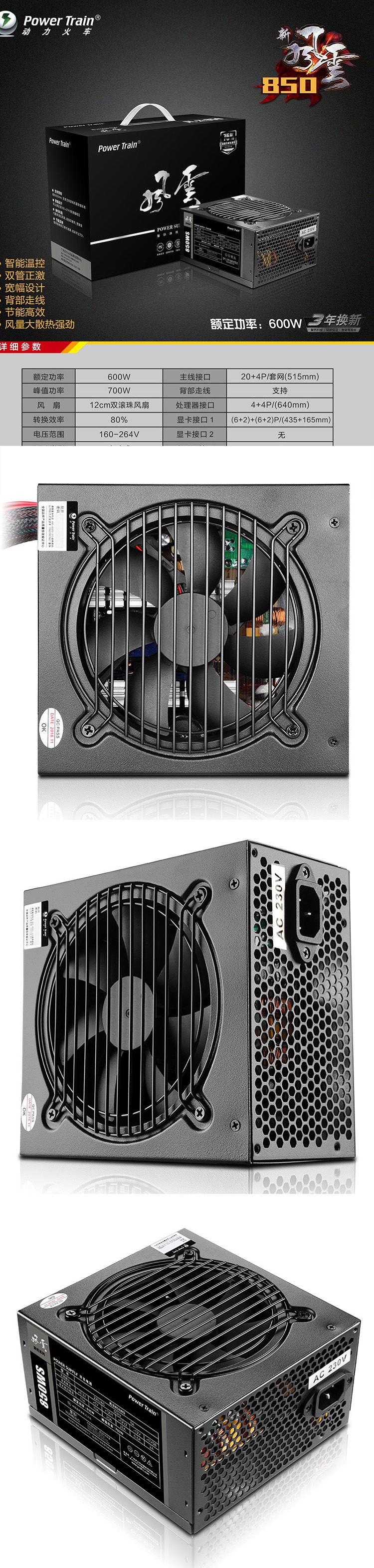 动力火车 风云850WS 电脑电源 额定功率600W