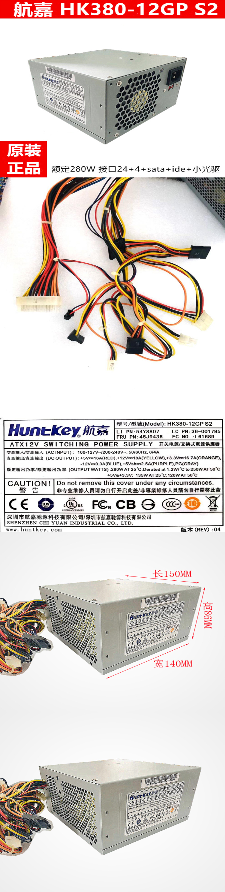 航嘉 HK380-12GP S2 台式机电源24针 静音 适用机型HK380-12GP PC6001 PS-5281-7vr