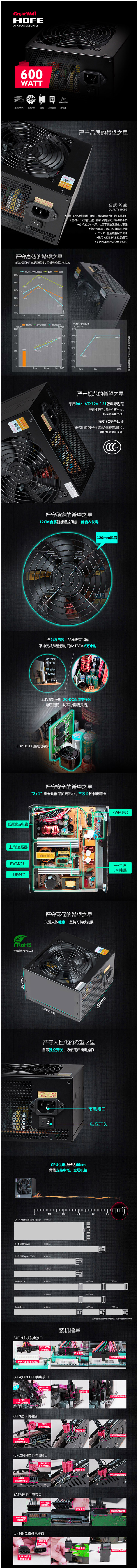 长城 Greatwall HOPE-7000DS 电源 额定600W直出 60cm超长输出线 日系固态 DC-DC 12cm静音风扇