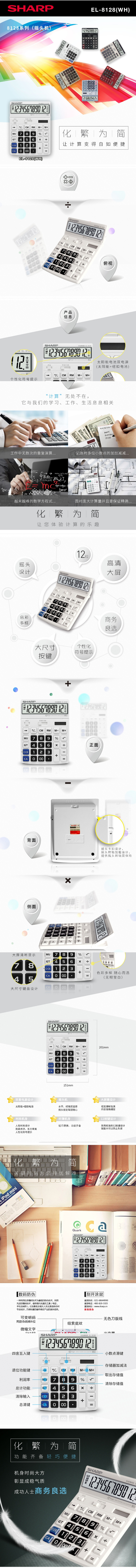 夏普(SHARP)EL-8128-WH 大屏大字大键商务办公计算器 莹白色