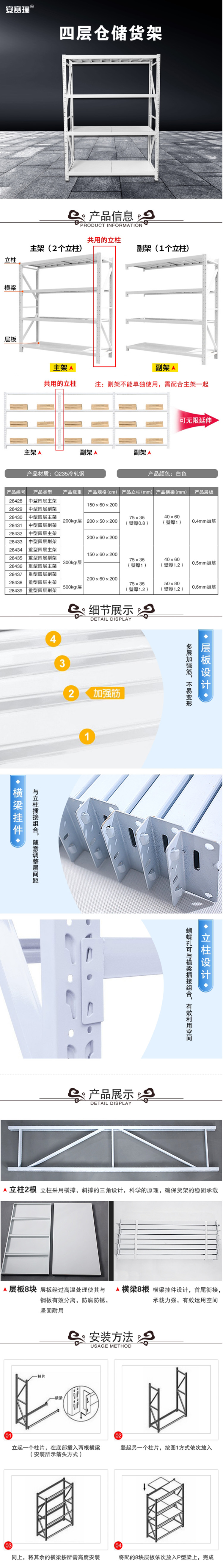 商品名称 重型仓储货架 四层主架